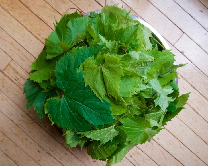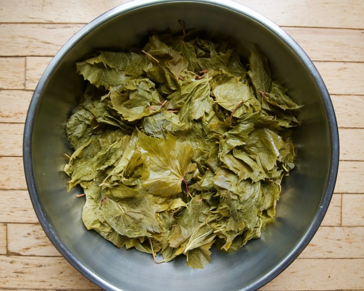 • 2 pounds (900 grams) fresh grape leaves, unblanched -OR-