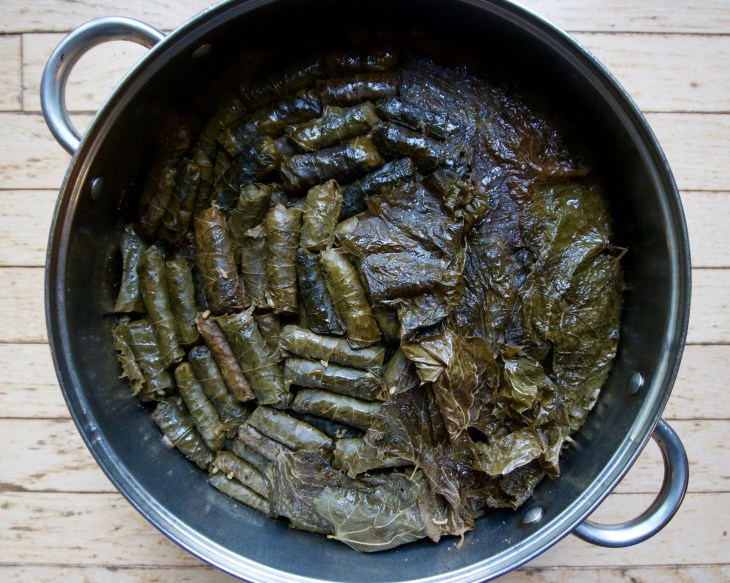 This recipe was developed while my entire family was together under one roof (which doesn’t happen often) and we all prepared a true family-size pot of Warak Dawali. I debated trying to make the recipe more applicable to others, but honestly, I never heard or even saw a small pot of Warak Dawali. It’s the type of dish that is always made in the largest pot you own because everyone loves it, everyone will eat seconds (and thirds) and everyone is going to come together to help make it-so there will be plenty of mouths to feed. Everyone works their way up the ranks when it comes to taking part in making this dish. As a kid, I always prepared the pot and stacked the rolled leaves. Then I graduated up to rolling leaves, learning to make them as neat and perfect as my mother and sisters. I highly encourage getting all hands on deck and sharing in the tradition of communal cooking. If you’re trying to make a slightly more modest amount of Warak Dawali, cutting the recipe in half will still yield plenty for a family dinner or get-together.