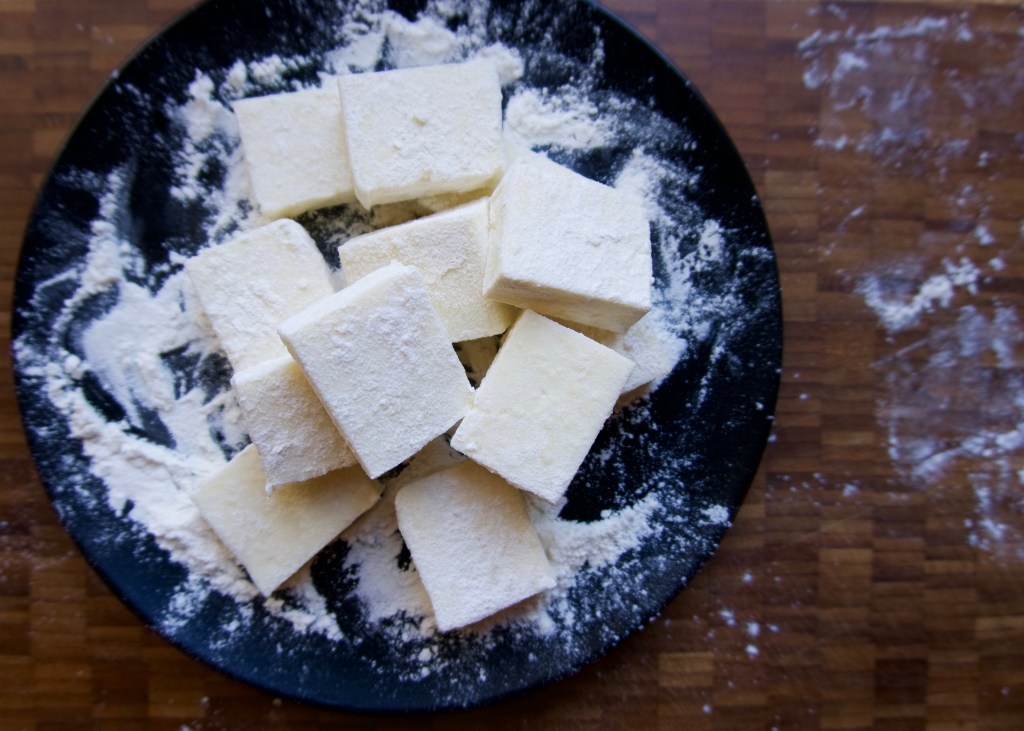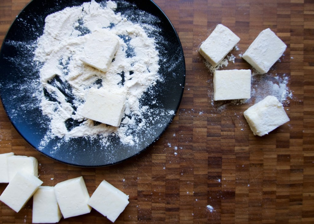 Akkawi cheese dusted in cornstarch
